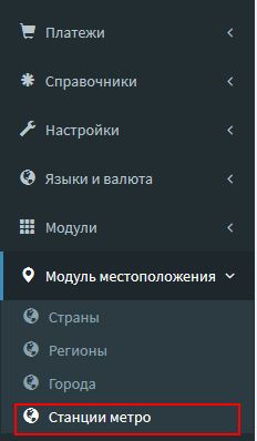 А также в левом меню панели администратора добавляется пункт "Станции метро":